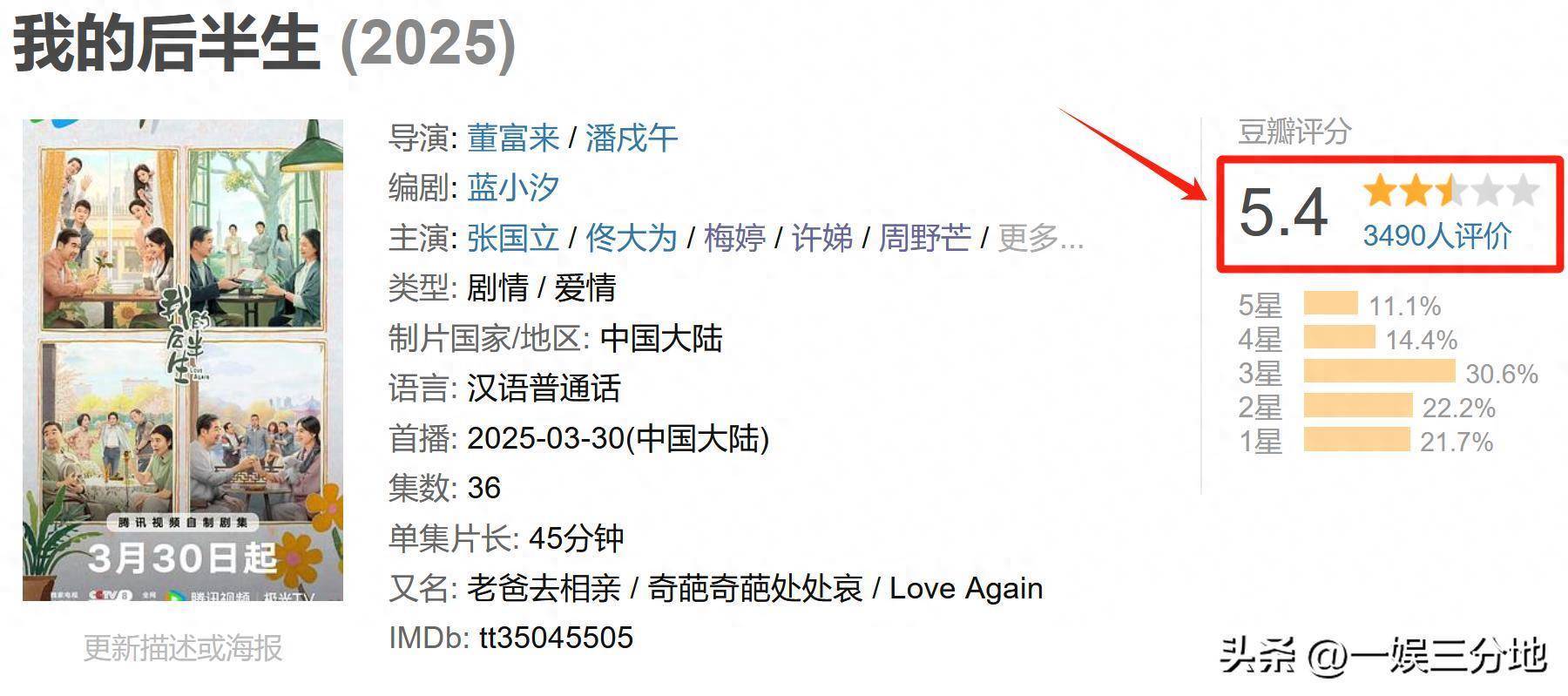 最近,《我的后半生》虽一直有收视热度,但口碑评价却是“一泻千里”。